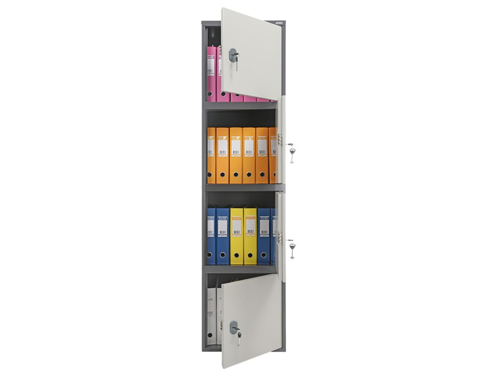 Бухгалтерские шкафы AIKO: Сварная конструкция из стали толщиной 1,2 мм, отдел для почты с замком, ключевым или электронный замок PLS-1. Эти шкафы – настоящий сейф для ваших документов. Электронный замок PLS-1 поддерживает несколько цифровых комбинаций, что удобно при коллективном использовании с персональными кодами доступа.