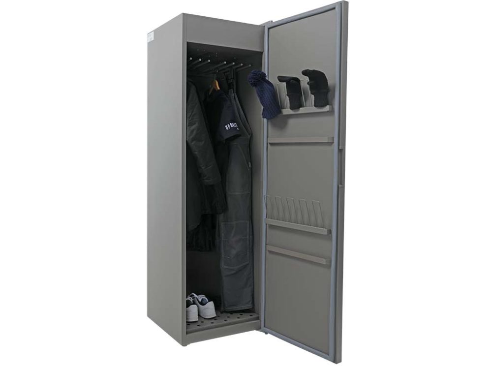 • Высокая производительность. Двухсекционная конструкция позволяет быстро и качественно сушить комплекты одежды, головных уборов, рукавиц, униформы, обуви и других предметов. Эффективная система вентиляции обеспечивает равномерное распределение тепла.