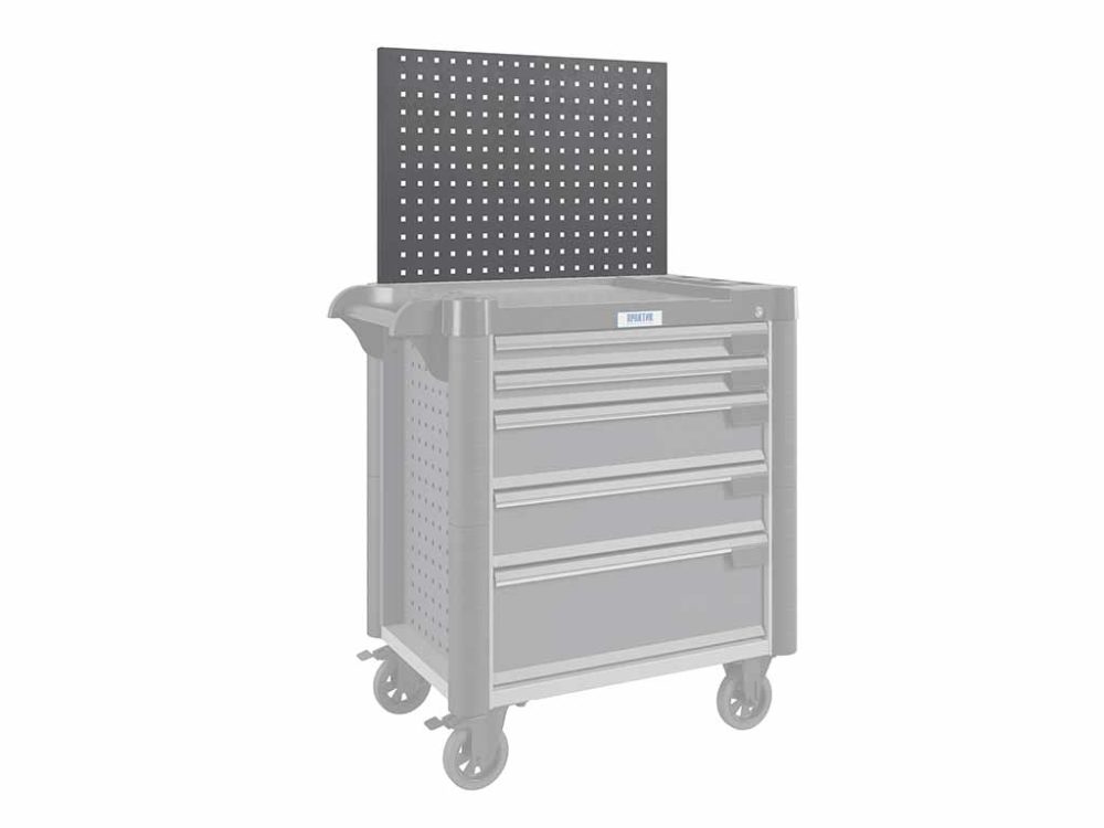 • Экраны для инструмента: Перфорированные экраны с держателями и крючками позволяют удобно разместить инструменты, обеспечивая быстрый доступ.