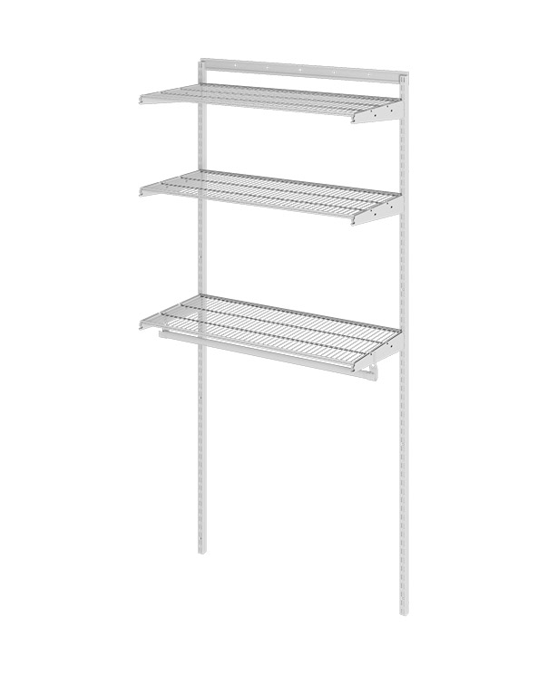 Преимущество системы Basic — продуманная конструкция. Лаконичный и интуитивно понятный дизайн делает ее не только надежной, но и привлекательной. Белый цвет гармонично впишется в любой интерьер, добавив свежести и легкости. Регулируемые полки и штанги позволят адаптировать систему под ваши нужды.