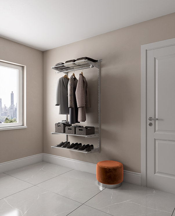 Простота сборки и установки делает Basic идеальным решением. Она легко собирается и устанавливается без специальных навыков или инструментов. Превратите пространство в удобную и функциональную зону хранения, забыв о беспорядке. Наслаждайтесь идеально организованным гардеробом с Basic!