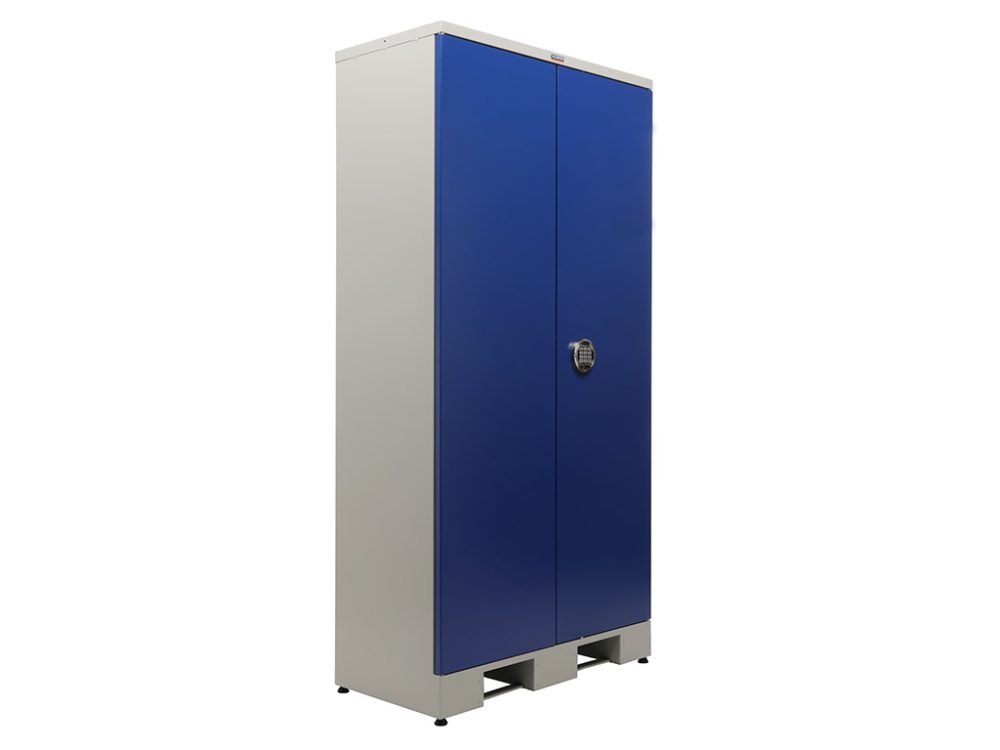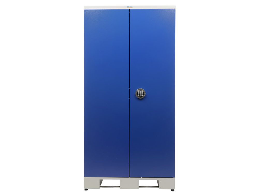 Порошковое покрытие обеспечивает устойчивость к царапинам, коррозии и другим внешним воздействиям. Стандартный цвет — серый полуматовый (RAL 7038), двери — синие (RAL 5002), что придает шкафу современный и эстетичный вид.