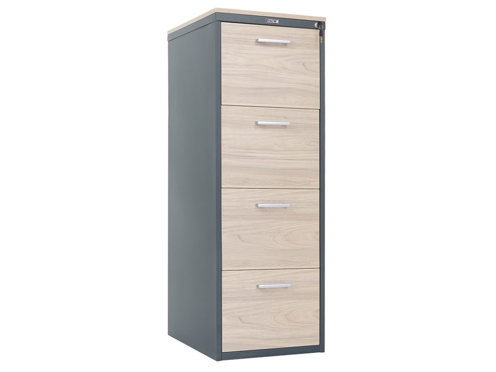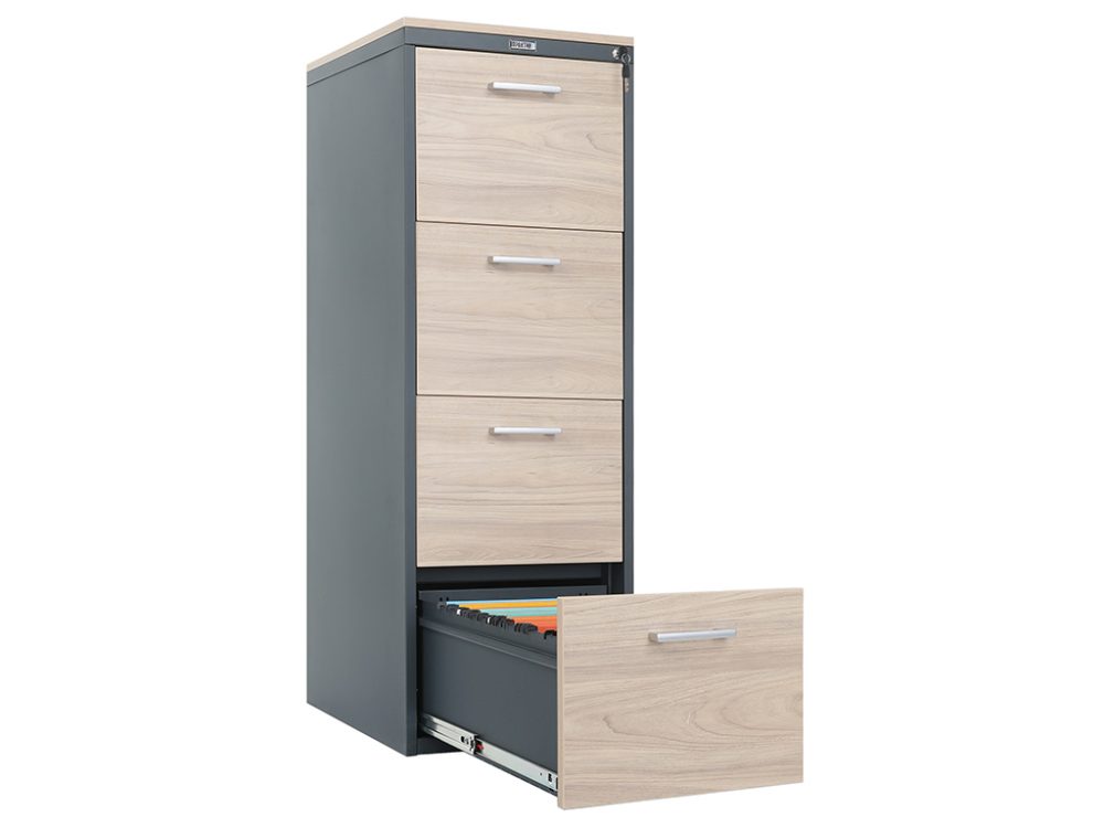 Эта модель идеально подходит для крупных компаний, архивов и делопроизводственных отделов. Она позволяет удобно систематизировать большие объёмы документации. Четыре выдвижных ящика обеспечивают структурирование материалов по категориям, отделам или срокам хранения.