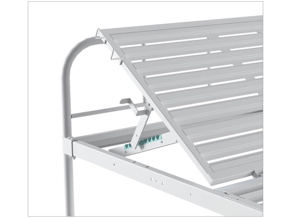 - Функциональность: Высота от пола до ложа (500 мм) упрощает уход за пациентом. Прочная сварная сетка основной секции и металлические рейки головной секции поддерживают матрас и обеспечивают циркуляцию воздуха. Пластиковые заглушки на опорах защищают пол и повышают устойчивость.