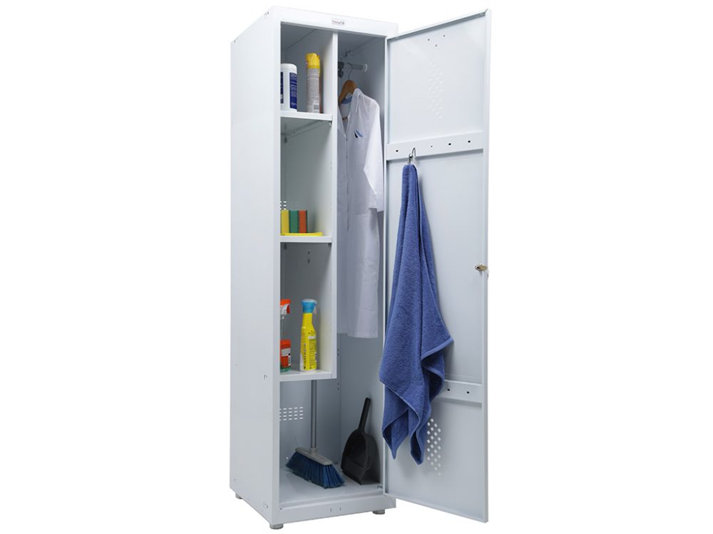 - Универсальность: шкаф подходит не только для хранения рабочей одежды, но и для любого хозяйственного инвентаря.
