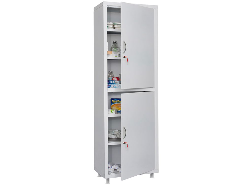 - Защита от коррозии: Порошковое покрытие белого цвета не только выглядит эстетично, но и защищает шкаф от воздействия агрессивных веществ, что особенно важно в медицинских учреждениях.