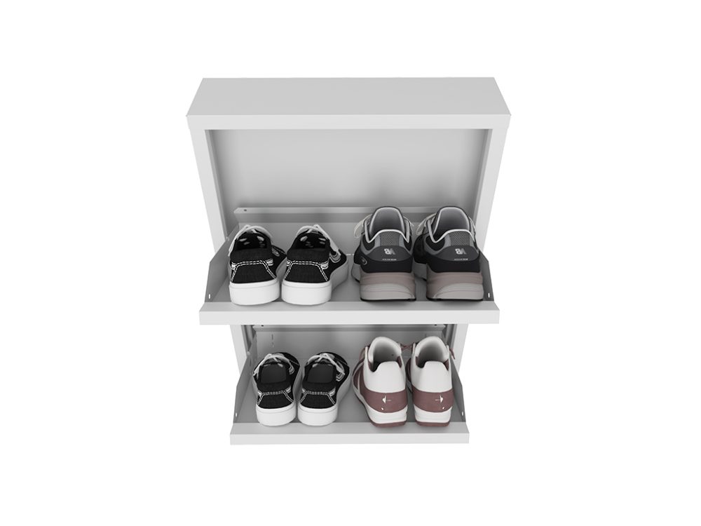 Размеры обувницы Практик ОМ-2 невелики, но каждая из двух ячеек с откидными полками вмещает до двух пар обуви, включая 43-й размер. Ячейки имеют размеры 70×459×305 мм, что достаточно для повседневной обуви. Откидные полки позволяют легко и быстро найти нужную пару.
