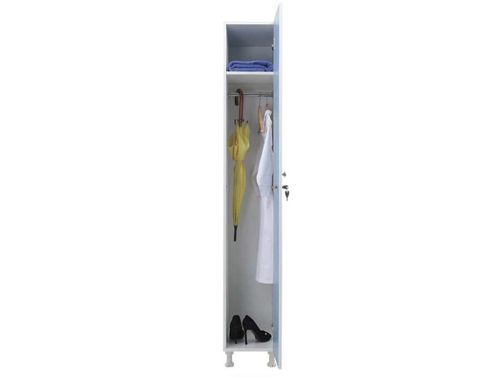 - Безопасность: Дверь с металлической ручкой и ключевым замком надежно защищает ваши вещи.