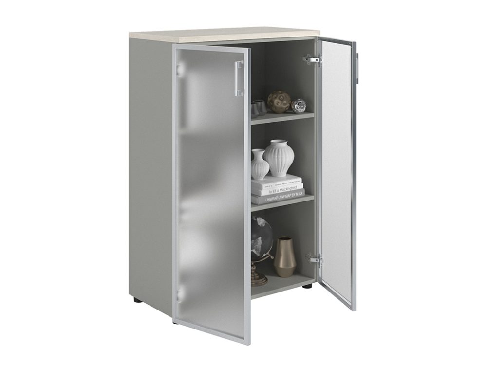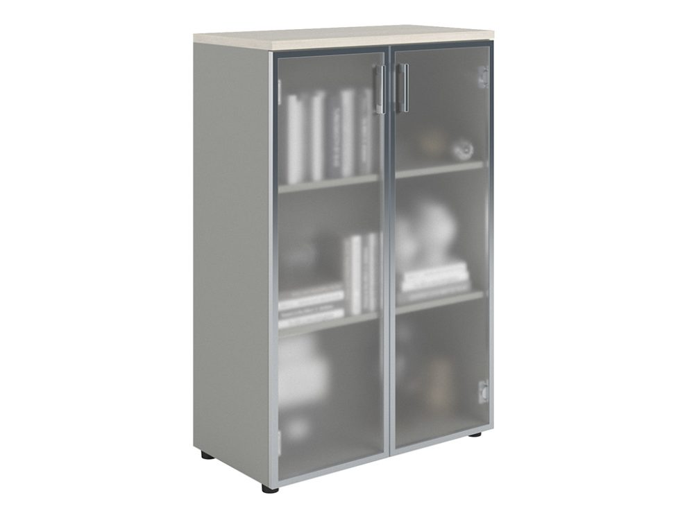 Шкаф для офиса NW 1280/2G со стеклом: белое дерево и серый