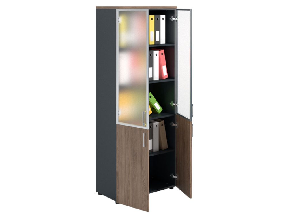 Офисный шкаф NW 2080/2G со стеклянными дверями: белое дерево и серый