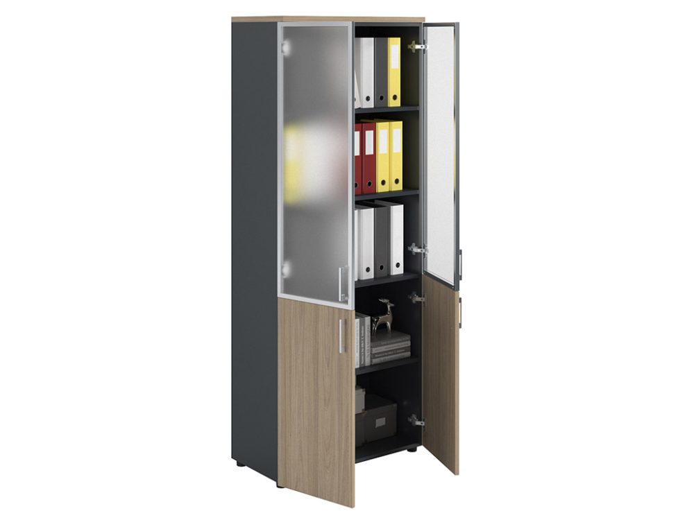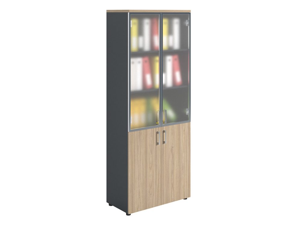 Офисный шкаф NW 2080/2G со стеклянными дверями: темный орех и антрацит