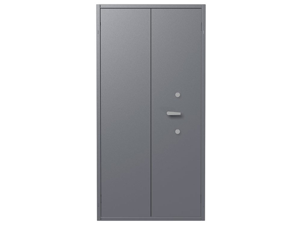 • Комплектуются двумя ключевыми сувальдными замками класс 2 ГОСТ 5089-2011 (по 2 ключа от каждого замка в комплекте) с опечатывающими устройствами. Поворотная ручка для удобства открывания и закрывания. Левая створка двери оборудована двумя подпружиненными самозапирающимися защелками (вверх и вниз) с приводом от ручки находящейся на внутренней стороне створки двери.