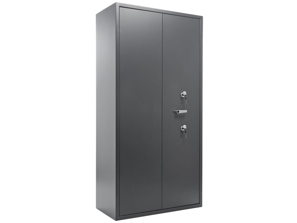 Шкаф сертифицирован по классу устойчивости к взлому S2 по ГОСТ 55148-2012 и оснащен ключевыми сувальдными замками российского производства класса 2, что обеспечивает высокий уровень защиты от несанкционированного доступа.
