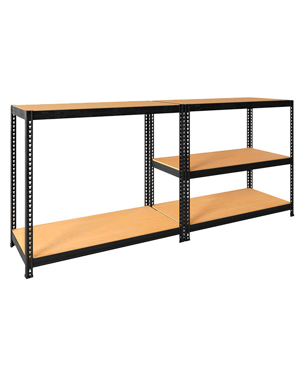 Стеллаж SBL 180KD/75×35/5 можно собрать в традиционной вертикальной конфигурации или горизонтально, что удобно для школьных мастерских, гаражей и других помещений с ограниченным пространством.