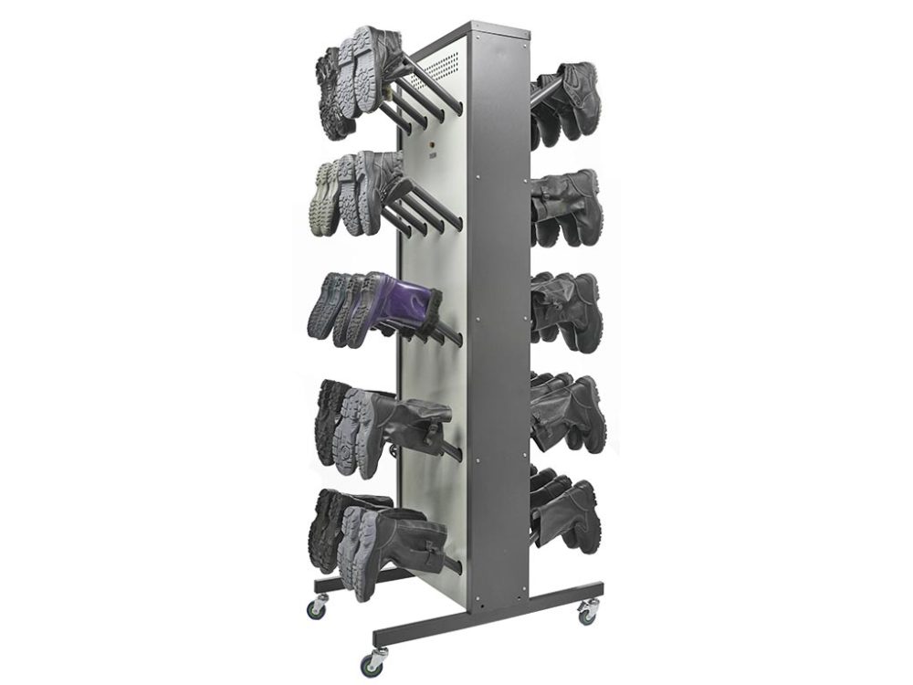 - Высокая производительность. Двухсекционная конструкция позволяет быстро и качественно сушить комплекты одежды, головных уборов, рукавиц, униформы, обуви и других предметов. Эффективная система вентиляции обеспечивает равномерное распределение тепла.