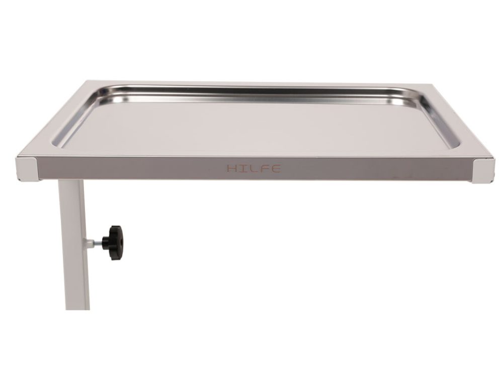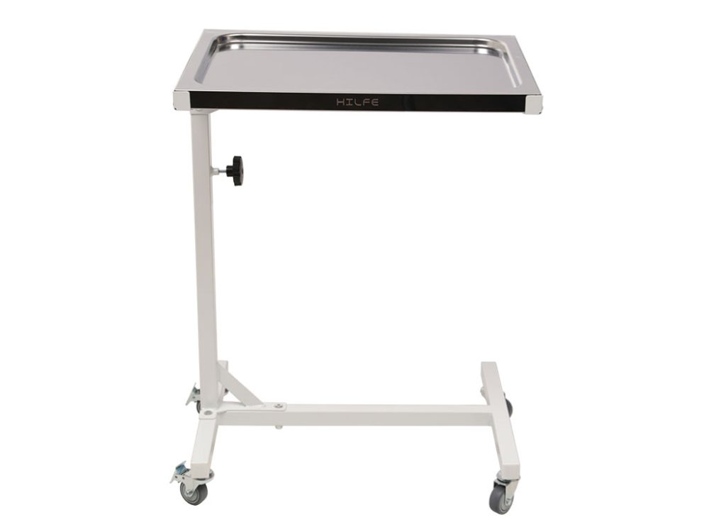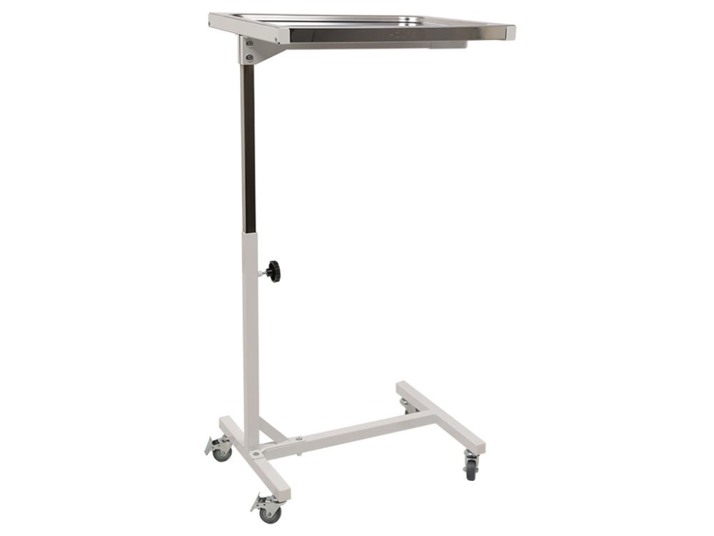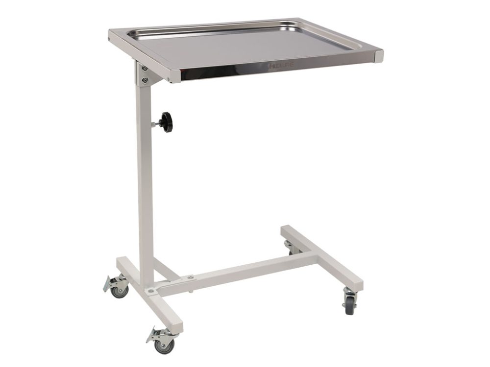 - Регулируемая высота: высоту полки можно настроить с помощью удобного зажимного винта. Это позволяет адаптировать стол под нужды хирурга.