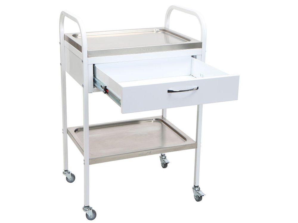 Стол имеет прочный каркас из профильной трубы, покрытый износостойким составом. Это защищает от коррозии и повреждений, обеспечивая долгий срок службы. Полки и ящики из нержавеющей стали устойчивы к механическим воздействиям, царапинам и агрессивным дезинфицирующим средствам. Нержавеющая сталь гарантирует гигиеничность и легкость ухода, что важно для медицинских учреждений.