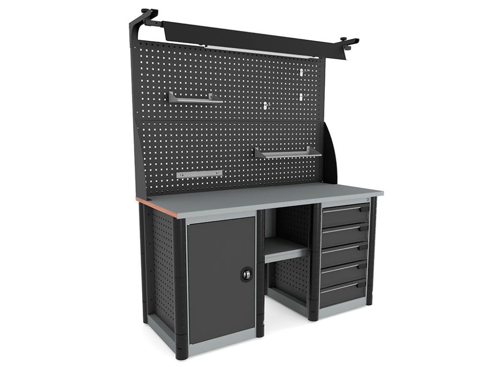 • Универсальные тумбы для хранения: Верстаки поставляются с тремя видами тумб: с одной дверцей, четырьмя ящиками и пятью ящиками. Вы подберете оптимальную конфигурацию для хранения инструментов и материалов.